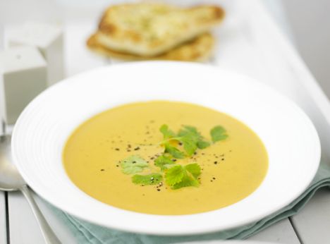 Stir through the coriander then once cooled slightly blend with a hand blender until smooth and all lumps have disappeared.