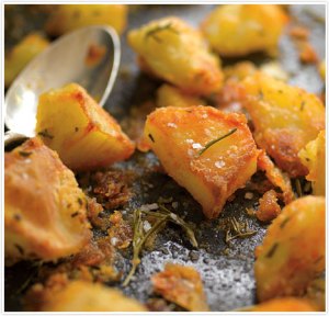 Sprinkle over some rosemary and a few cloves of squashed garlic with its skin left on.