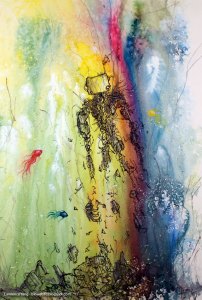 His Blog and Artwork Website are also worth having a look at, very impressive stuff! To me it looks very surreal, i like the boldly drawn characters surrounded by a water coloured world, they have a dream like quality to them.