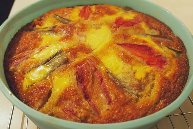 We have rhubarb growing in our veggie patch and there seems to be an abundance of it, so I set out looking for unusual recipes and discovered this delicious Rhubarb & Custard Sponge.