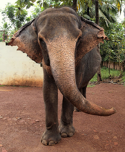 Indian elephants are smaller and darker grey than African elephants, with pink trunks and ears speckled with grey patches.
