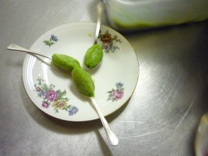 I loved all the details that made this restaurant special, the carafe & tumblers to drink wine from, tea towel napkins, vintage crockery & cutlery, tea lights in flowery saucers, mismatched tables & chairs. Even the toilet is interesting, with vintage ordinance survey maps layered with vintage pictures of food used as wallpaper and a confusingly convex gold framed mirror which makes you feel like you’ve had one too many drinks in the hall of mirrors!