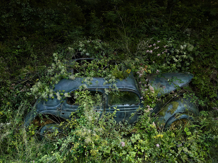 Paradise Parking is Paris-based photographer Peter Lippmann‘s photography project capturing abandoned cars being ravaged by nature, some still recognisable and others almost entirely demolished and devoured by the surrounding plants.