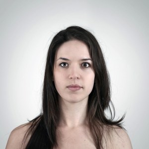Ulric explores genetic similarities between family members, by merging photos of the left or right half of their faces together, producing photos of the combined face of a brother and sister or father and son for example. Some of the photos are of the artist himself and one of his family members.
